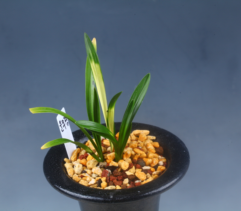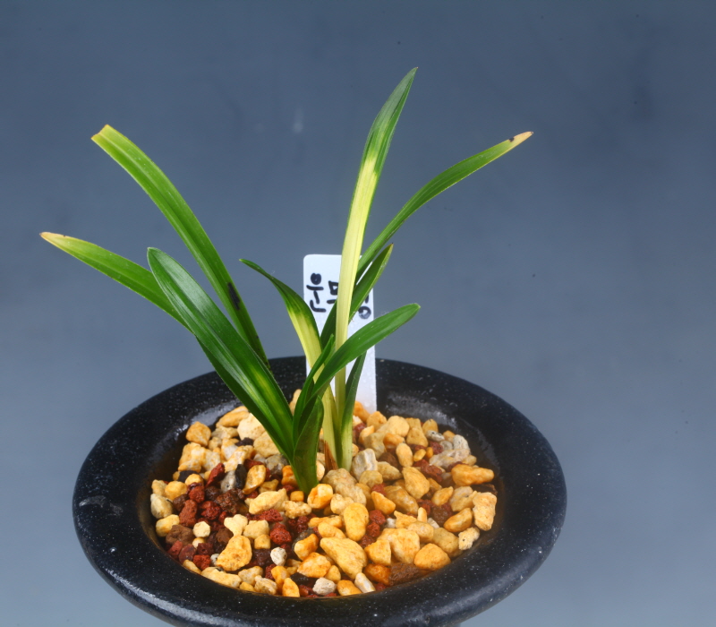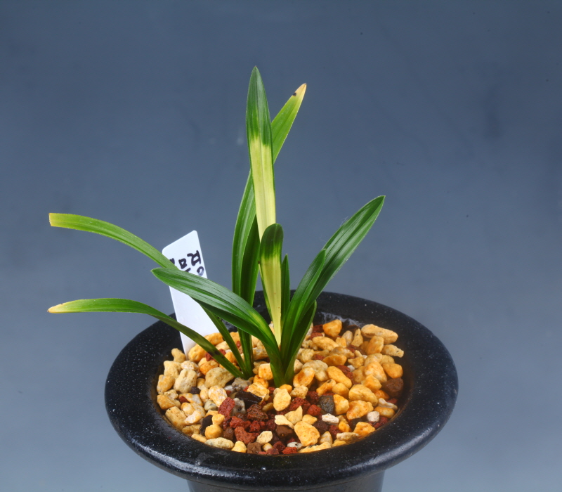 짭고 두터운 환엽성의 잎마다 황색 서호반 무늬가