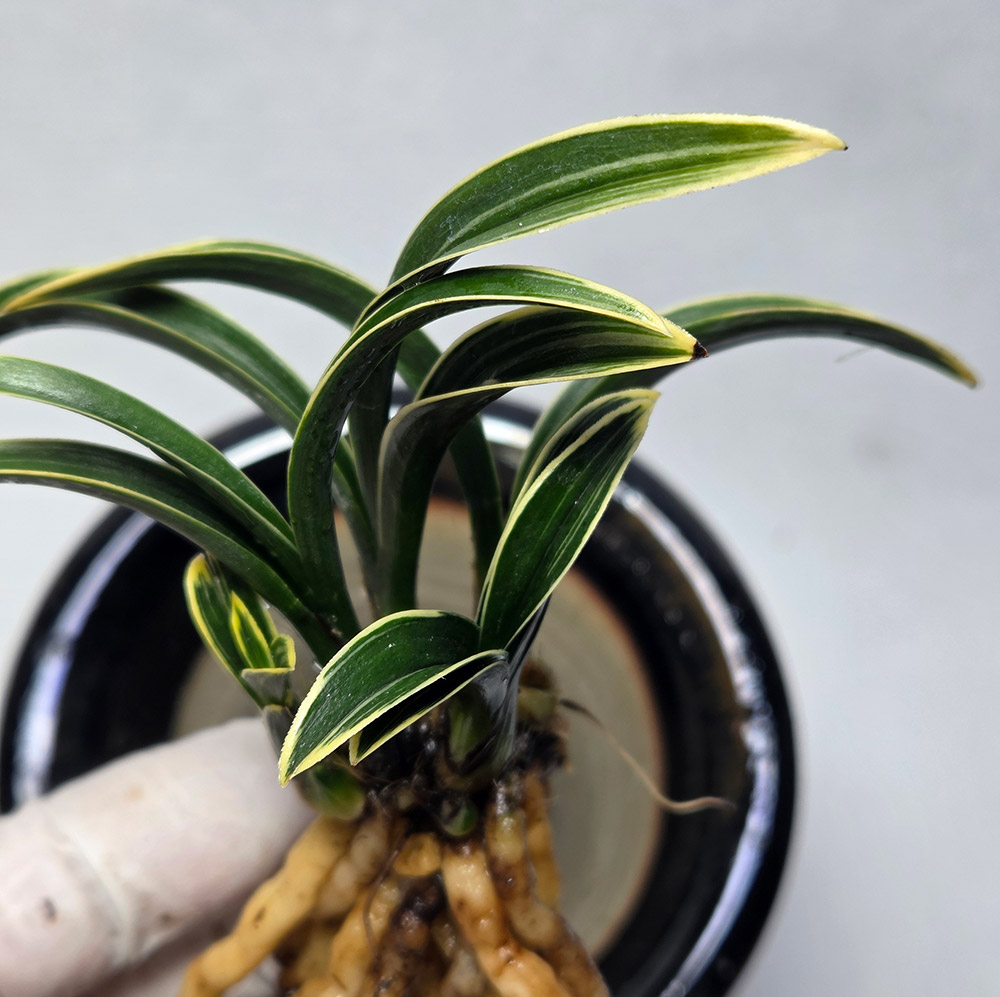 정말 단엽복륜의 진수를 보여주는 정말 신라답게 빵빵한 자태를 자랑하는 신라 5촉입니다. 현재 5촉으로 신아 1개는 제법 많이 자랐으며 다른 한쪽으로 잠아 생성된듯 보입니다. 1~2년 정도만 더 배양하면 전시 작품용으로도 도전해봐도 좋을듯 싶습니다. 촉수 : 5촉 , 길이/넓이 : 13/1.0 , 분주/개화 : 명명품 , 산지 : 명명품 종류 : 신라 가격 : 00 촉수 : 5촉 연락처 : 010-6274-1154