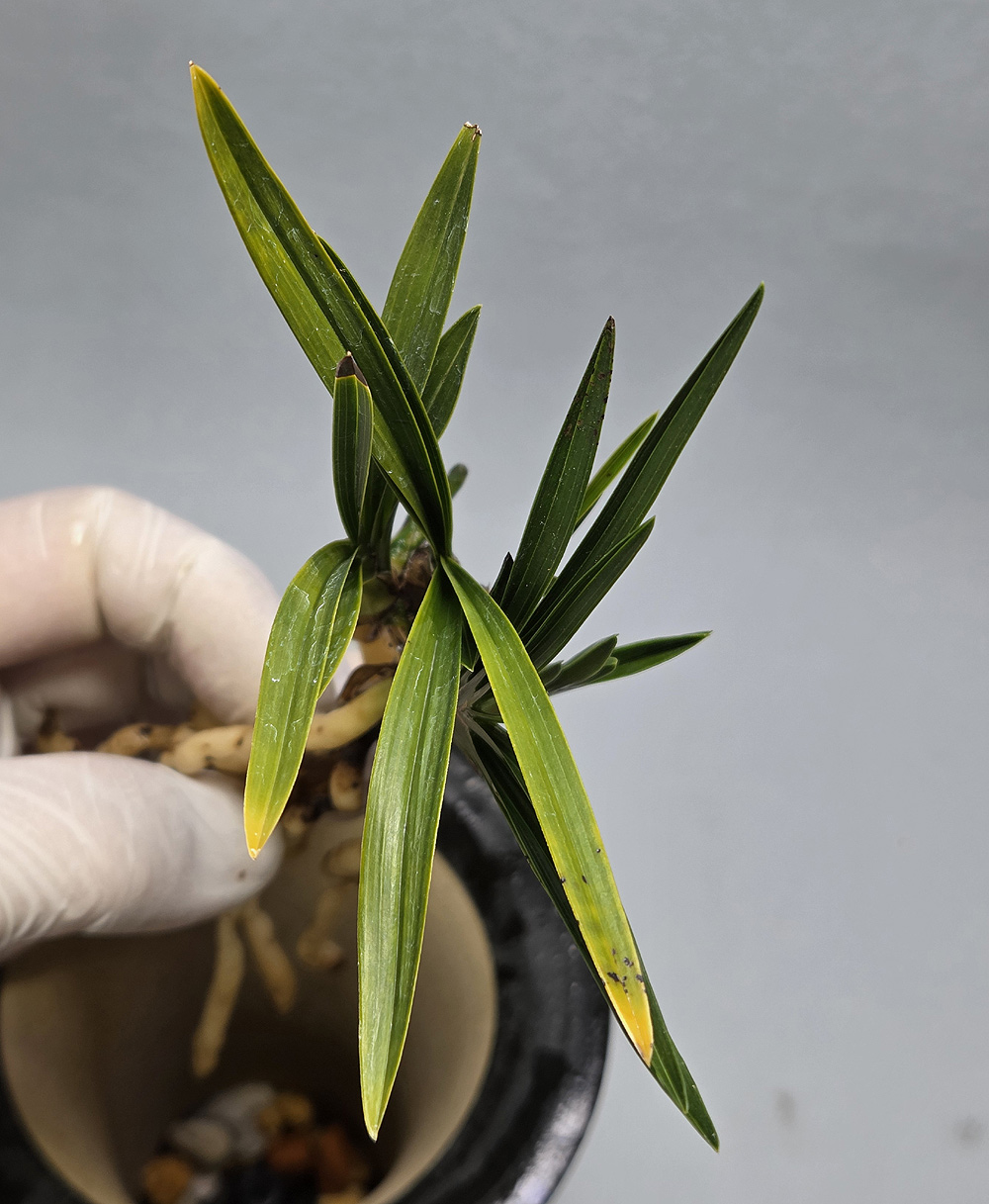 소장가 직접 산채 하여 배양해온 품종으로, 관리 소홀로 작황이 아쉬운 종자입니다. 소장가 분주하여 총 3화분이 유일한 종자입니다. 플라스틱 처럼 매우 단단한 엽성이 시컴한 무광입니다. 신아 잠아 2개 육안으로 확인됩니다. 촉수:3촉+2촉, 길이/너비 : 8/0.8, 분주/미개화, 산지 :진도 종류 : 입변두화목 가격 : 00 촉수 : 3촉+2촉 연락처 : 010-6274-1154