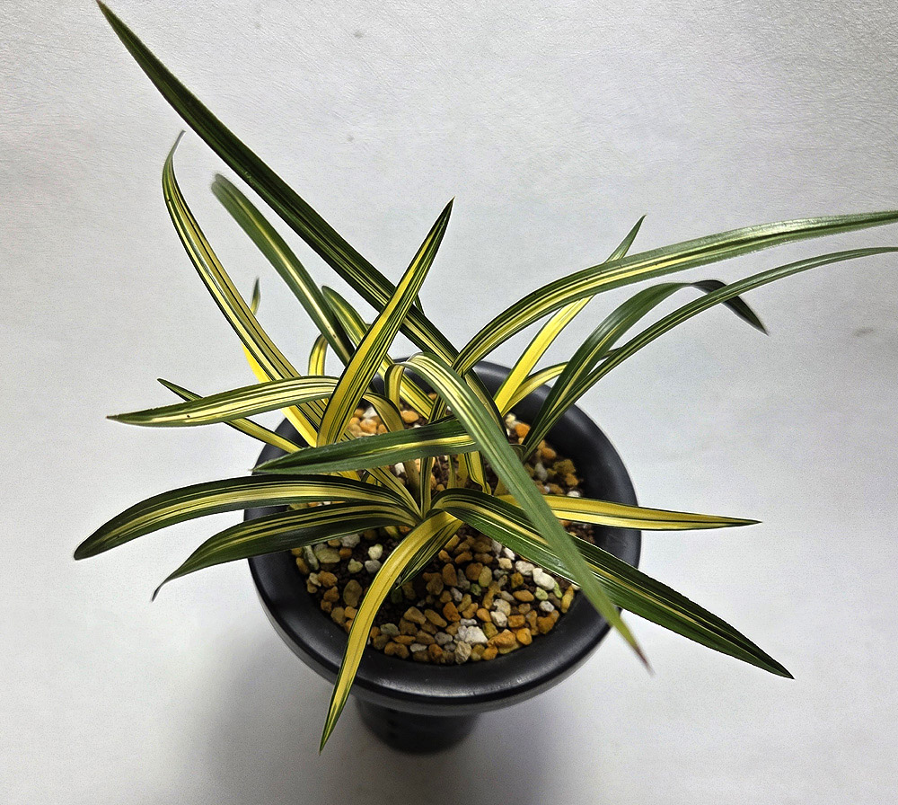 멋진 무명의 중투 6촉입니다. 작년 4촉에서 2촉 신아 받았으며, 올해 2촉의 신아 올릴걸로 예상됩니다. 잘 올려주면 8촉정도로 전시회 출품 해도 좋을듯 보입니다. 진청색감에 극황색의 중투 무늬가 매우 이쁜 종자입니다. 촉수:6촉, 길이/너비 : 22/1.0, 분주/미개화, 산지 : 고창 종류 : 환엽중투 가격 : 00 촉수 : 6촉 연락처 : 010-6274-1154