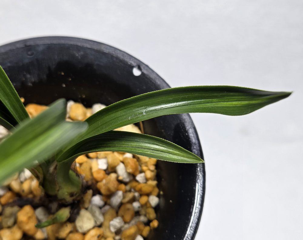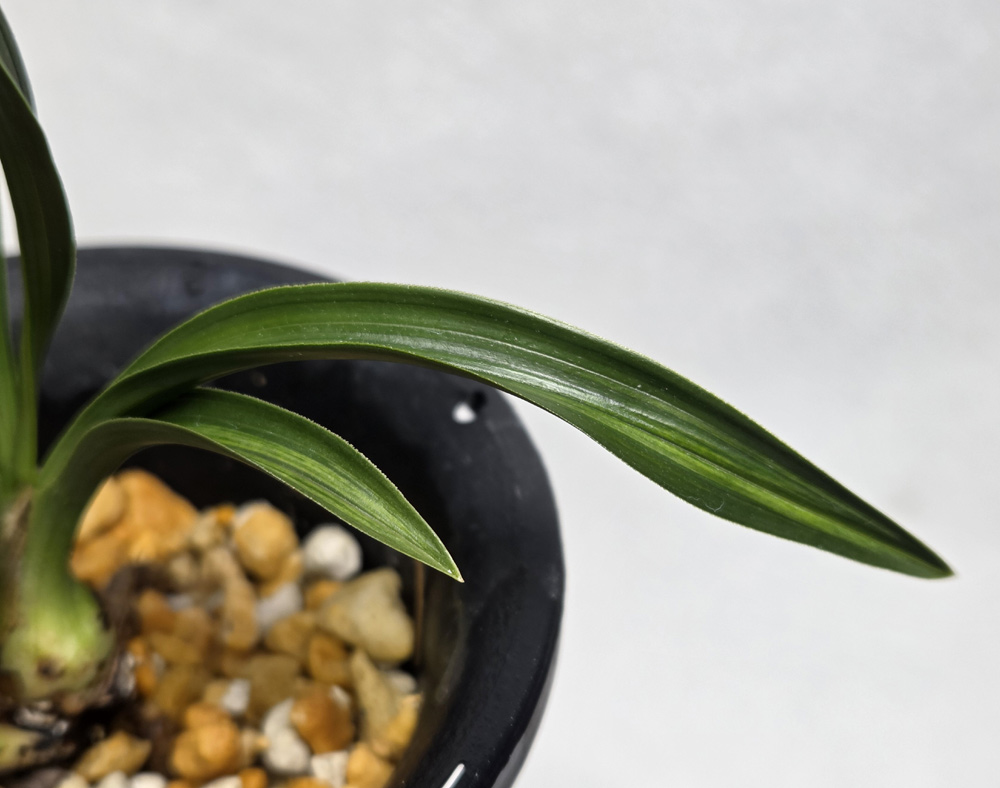 시컴한 후육질에 녹색의 산반성의 반성 무늬가 잎장 마다 잘 들어 있습니다.