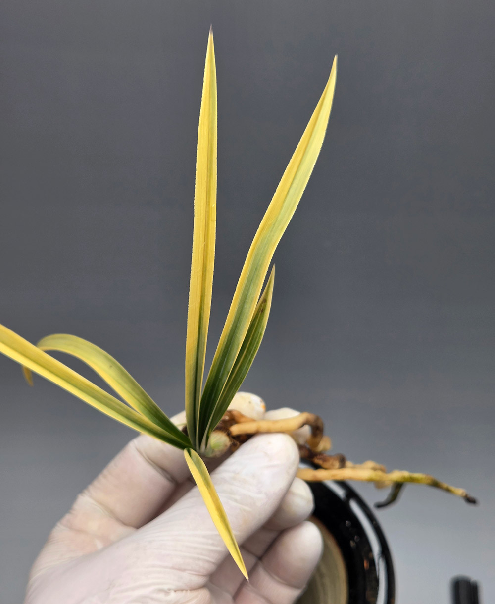 매우 단단한 엽성에 두터운 육질을 지닌서반 종자로, 매우 화려한 무늬 색상을 가지고 있습니다. 잎이 두터워 잎끝 녹이 없어도 타지 않는 종자입니다. 촉수 : 1촉 , 길이/넓이 : 13/0.9 , 분주/개화 : 분주/미개화 , 산지 : 고창 종류 : 서반 가격 : 00 촉수 : 1촉 연락처 : 010-6274-1154