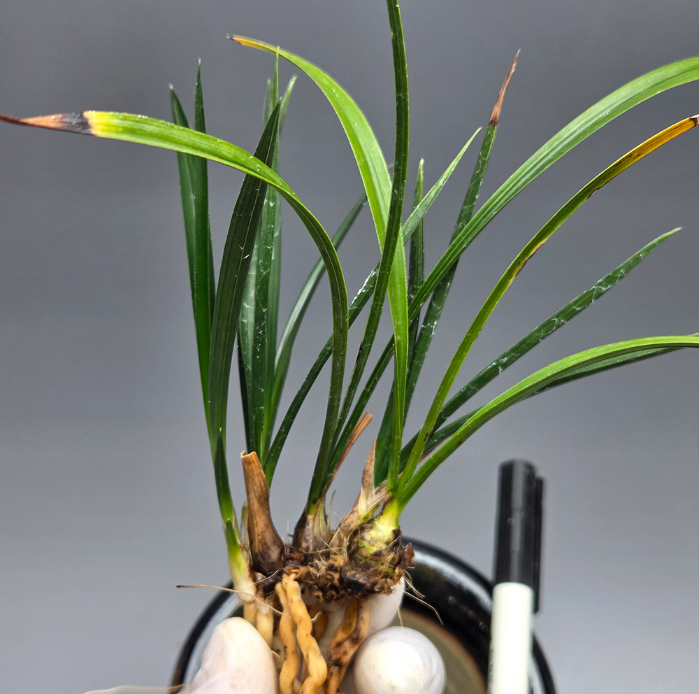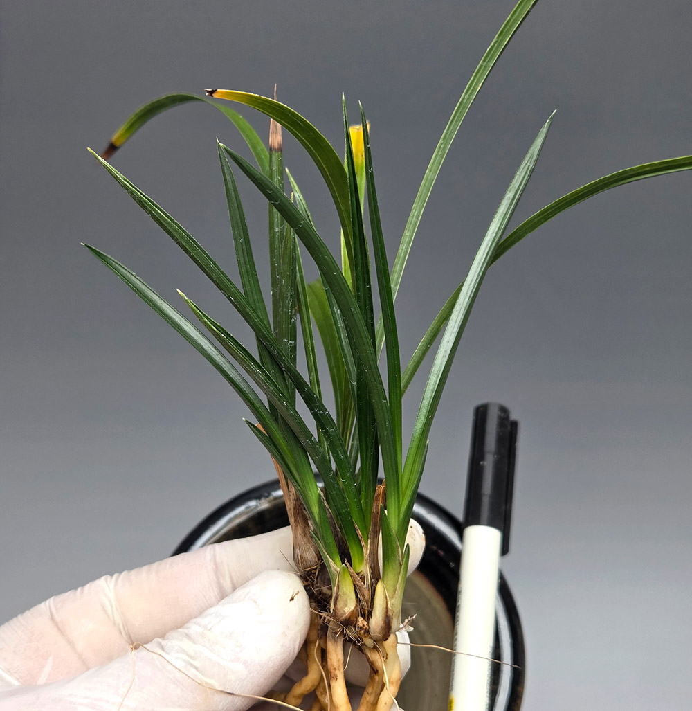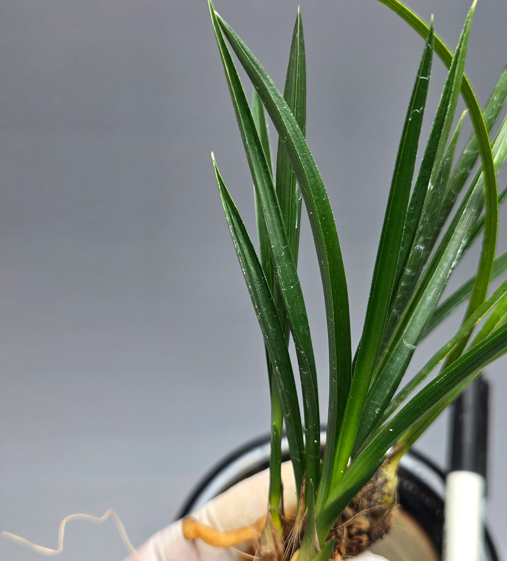 정읍 산채 출발이며, 산채 당시 잎장은 배골깊은 형태가 아니지만, 갈수록 배골깊은 V자 엽성을 지닌 입엽성입변 산반 종자로 발전하고 있는 품종입니다. 색감도 찐한 찐녹색을 가지고 있습니다. 촉수 : 7촉 , 길이/넓이 : 17/0.8 , 분주/개화 : 분주/미개화 , 산지 : 정읍 종류 : 입변 산반 가격 : 7만 촉수 : 7촉 연락처 : 010-6274-1154