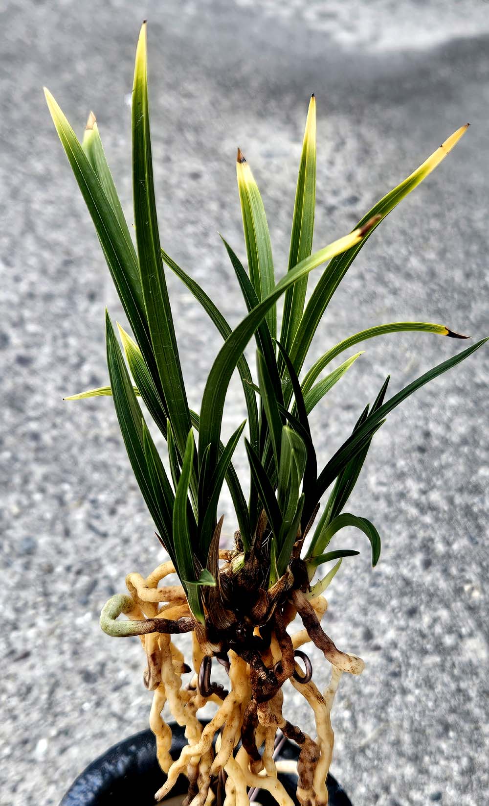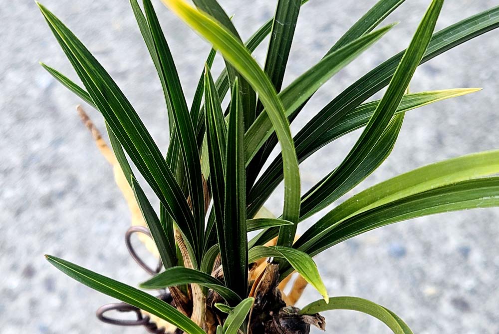 잎끝을 황색의 선반무늬에 반호 무늬를 함께 보이고있는