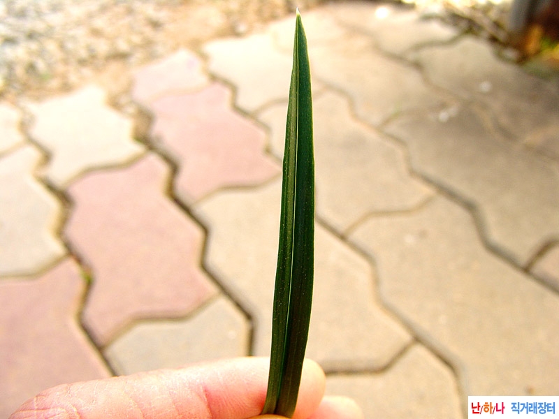 육질이 플라스틱처럼 두터운 장단엽 산반 입니다 산반무늬가 약하게 들어있습니다 전진 신아촉이며 벌브가 매우 좋습니다 산지 전남(고흥) 길이 16 넓이 0.7