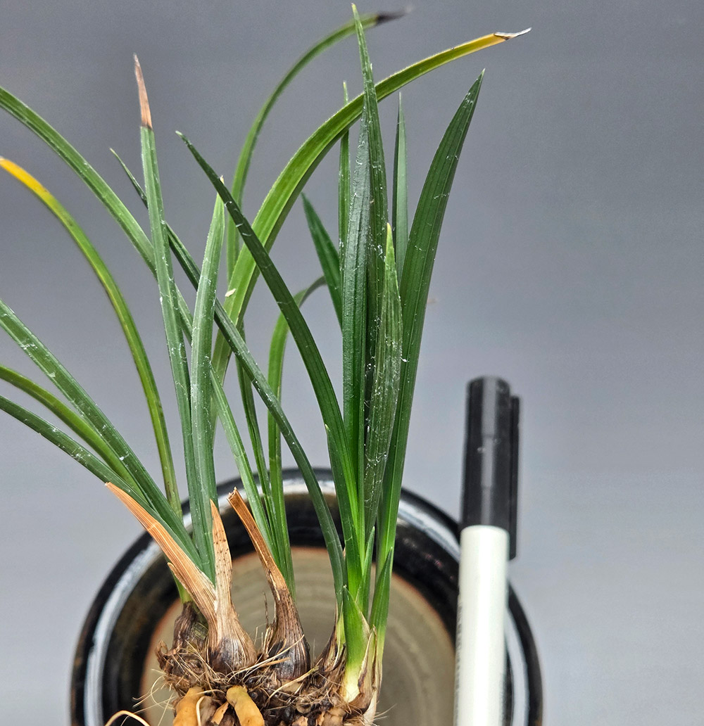 정읍 산채 출발이며, 산채 당시 잎장은 배골깊은 형태가 아니지만, 갈수록 배골깊은 V자 엽성을 지닌 입엽성 입변 산반 종자로 발전하고 있는 품종입니다. 색감도 찐한 찐녹색을 가지고 있습니다.