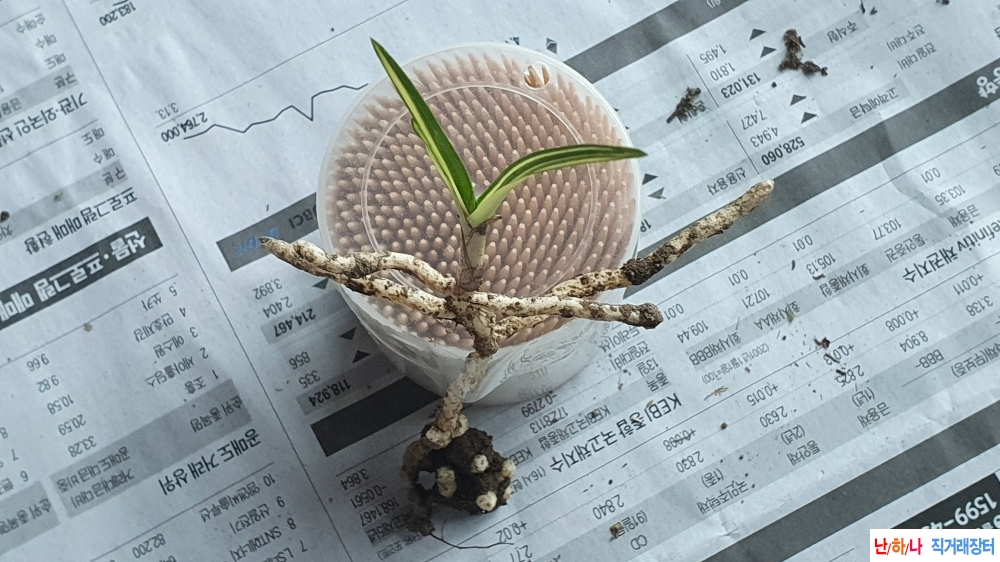 단엽변 극황 에이스 중압 황중투 생강근 입니다. 뿌리 잘 내렸네요