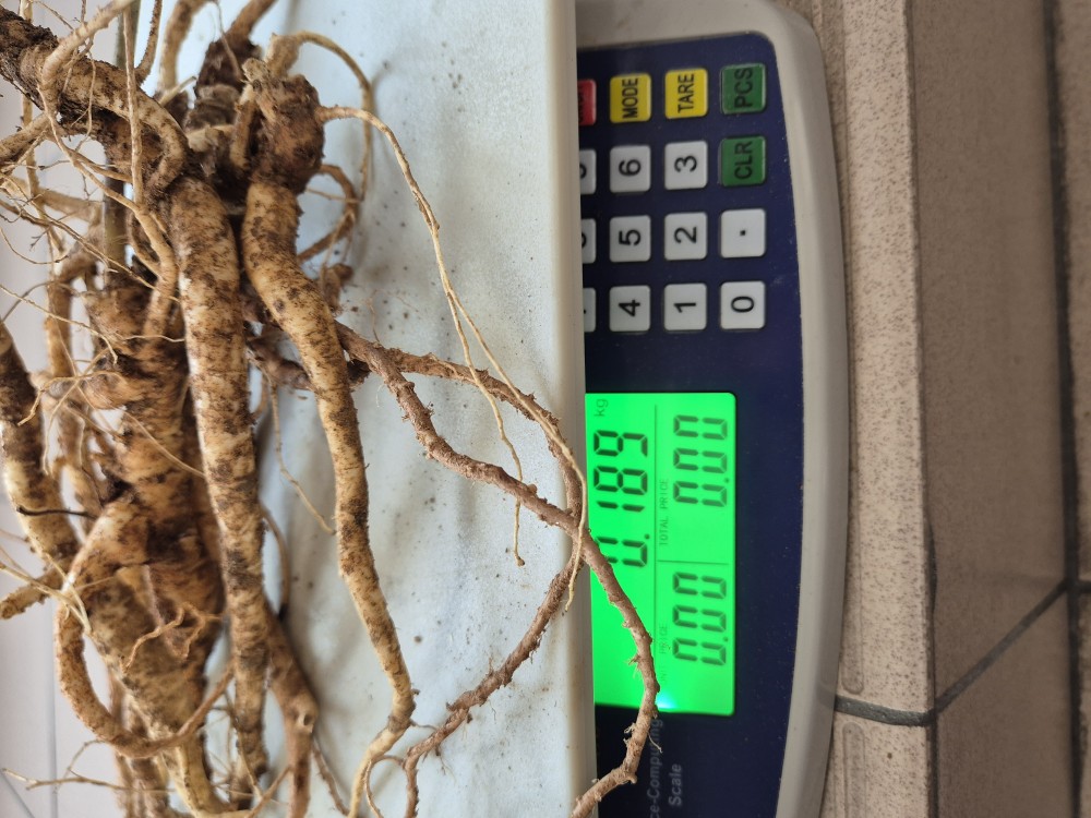 자연산 담금용 도라지 판매 합니다.어제(11/12) 캔것 입니다.가격 : 7뿌리 일괄 9만원(189g)
