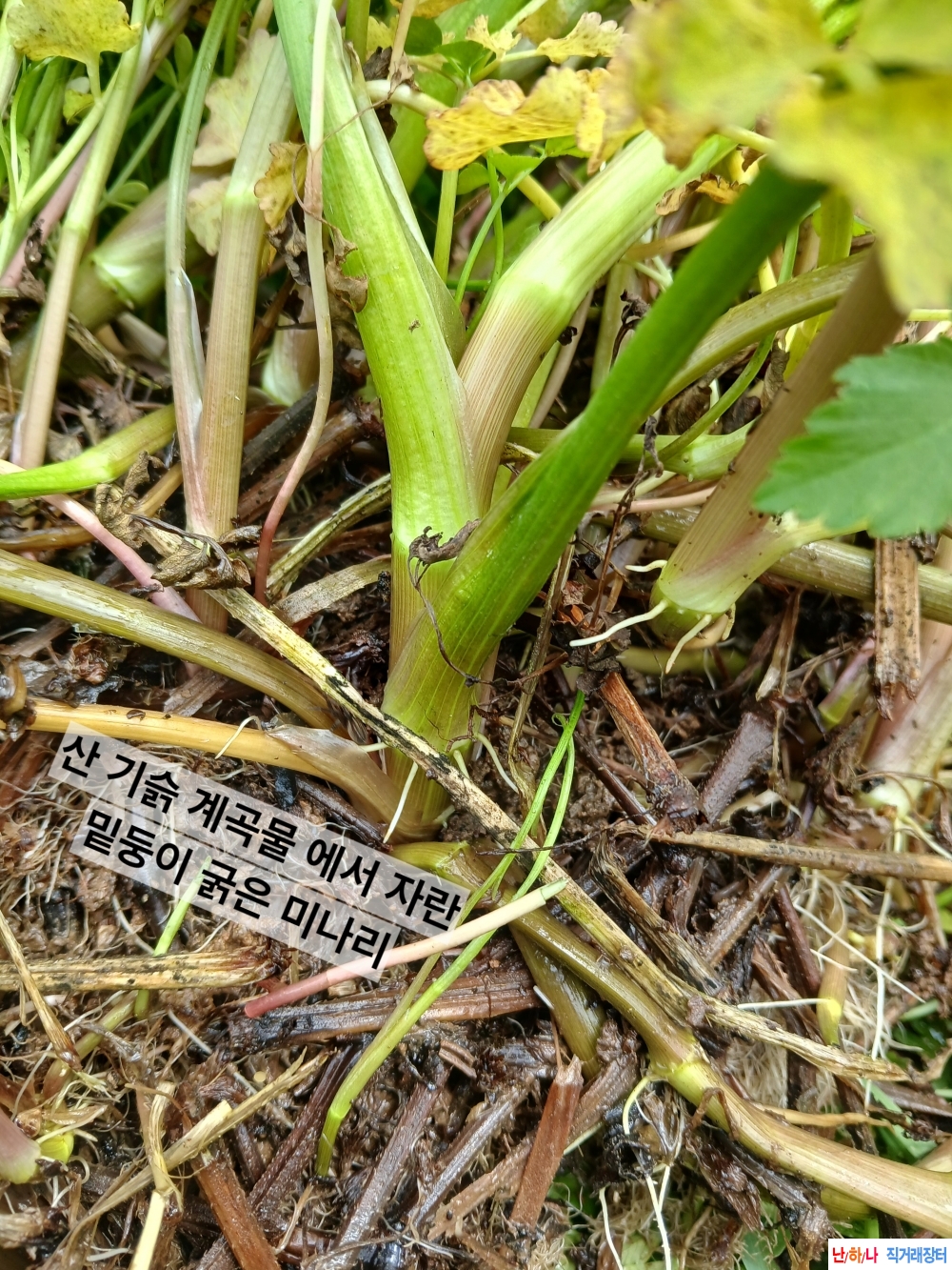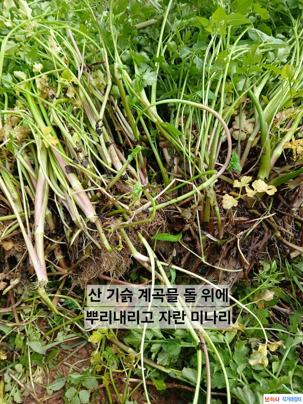청정 산기슭 계곡 자연산 붉 돌미나리
