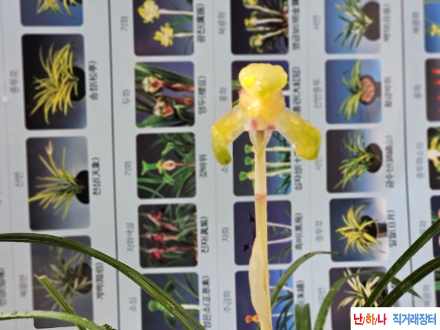 무명특종자 소개합니다. 함평산지의 황화로 원판형의 특화형입니다.금년도 전시 출품계획이 없어서아무런 꽃대관리 없이 피운 꽃입니다. 조기차광이나 화통작업등 약간의 꽃관리시 개나리색의 화려한 원판황화로 비어주는 꽃입니다. 종자하세요.25/0.8 종류 : 황화 가격 : 24만원 촉수 : 6촉 연락처 : 010-3606-3830 📞전화걸기 💬 문자보내기