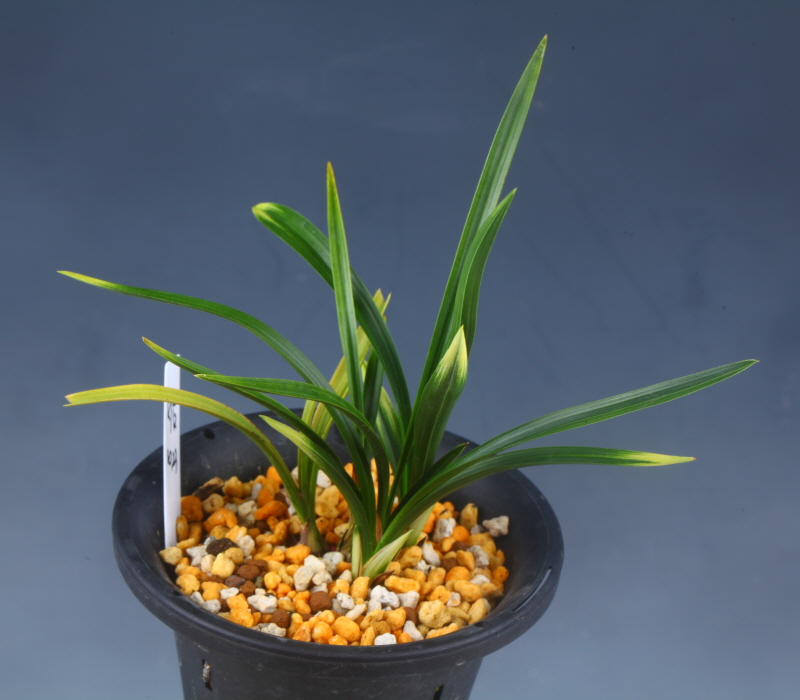 푸르고 두터운 잎에 비단을 깔아 놓은 듯 화려한 산반무늬가 잘 발현된 난 입니다,
