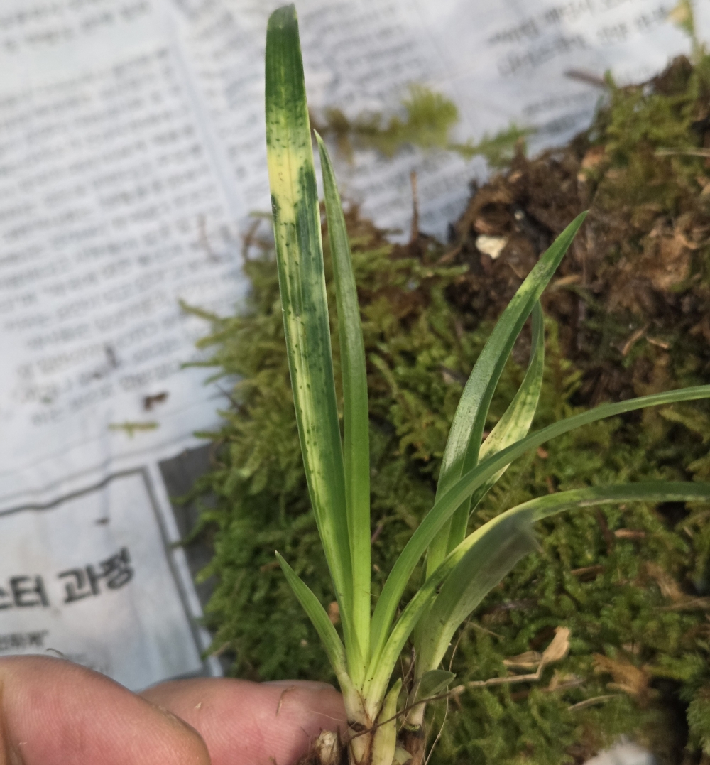 산채 출발 그대로 입변 서반 종자 2촉입니다. 입엽성으로 서있는 엽성에 화려한 서반 무늬가 잘 들어있습니다. 올해 잠아 양쪽으로 2개 달려있습니다. 촉수 : 2촉 , 길이/넓이 : 13/0.5 , 분주/개화 : 미/미 , 산지 : 경남 입금계좌 : 하나은행 3399-1050-991107 예금주 김훈 문의전화 : 010-6274-1154 종류 : 입변 서반 가격 : 12만 촉수 : 2촉 연락처 : 010-6274-1154 📞전화걸기 💬 문자보내기