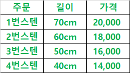 가격과 주문은 아래를 참고해주세요.