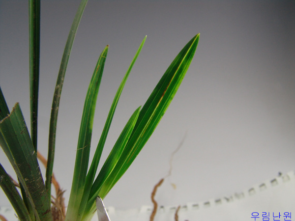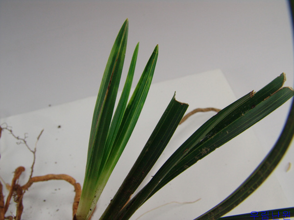 잎이 입변성이며 벌브가 약10개 정도 붙어있고 구촉은 토끼촉 입니다