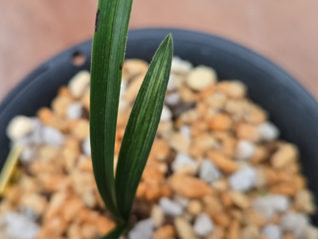 산지 ; 경남 합천길이/폭 : 9cm/6mm미분주/미개화잎의 마무리가 좋으며 변과 엽성이 좋고 산반중투 무늬도 좋은 종자목입니다. 종류 : 변좋은산반중투 가격 : 6만원 촉수 : 1촉+b 연락처 : 010-3130-1240