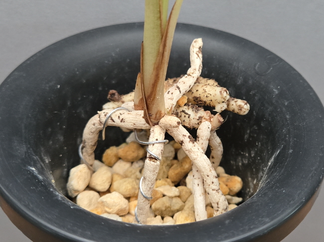 잎이 안으로 잘 옥아 있고 서반에 산반무늬도 보이는 산채품입니다.