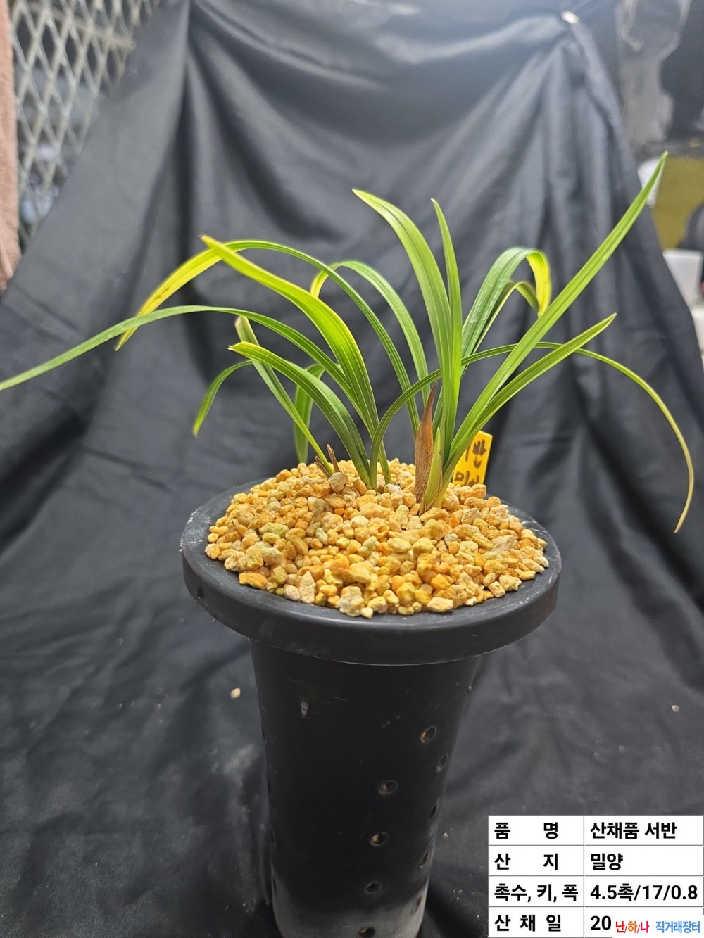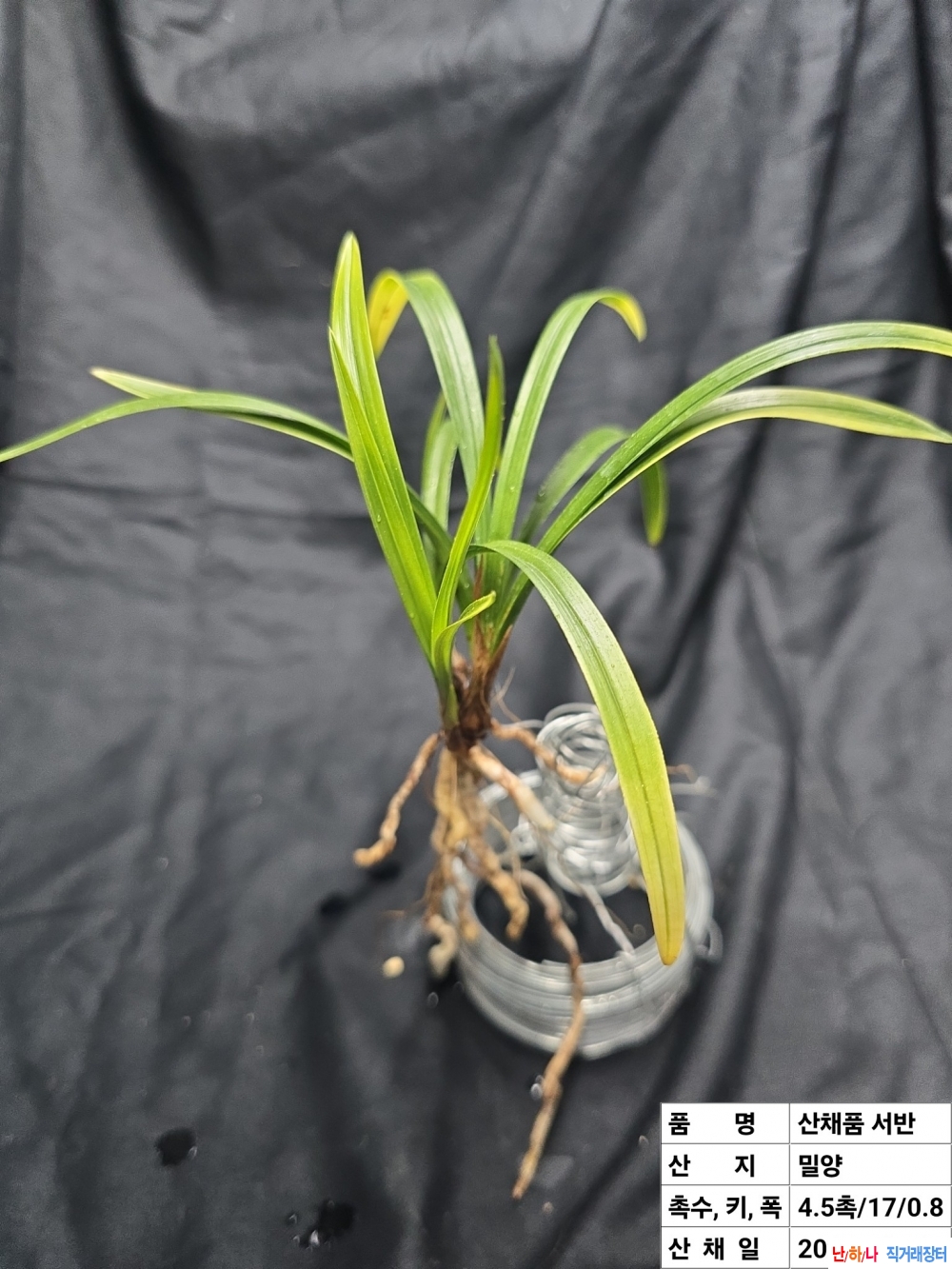 밀양 산채 원품입니다.탄력받아서 작품으로 배양가능합니다. 키, 폭은 사진 참조하세요. 종류 : 서반 가격 : 20만원 촉수 : 4.5촉 연락처 : 010-4968-5490 📞전화걸기 💬 문자보내기