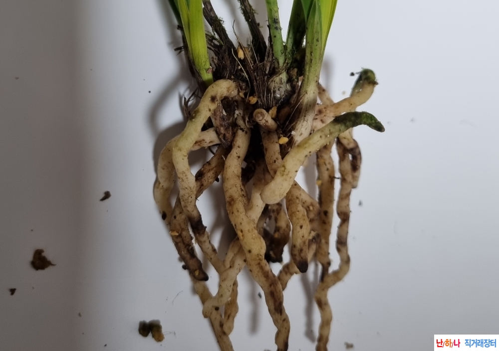 옆성좋고 잎마무리가 좋은 황서반 입니다. 전체적인 색감도좋아 엽예와함께 좋은꽃이 기대되는 난입니다. 산채 빽부터 있었으나 관리가안되어 구촉잎이 상하고 밑탄 신아촉을 분촉한 상태입니다. 잎과무늬 황색의 색감이 정말좋아 기대되는 난입니다. 맨 마지막 사진은 분주전 모습입니다. 폭 0.8 - 길이 15.