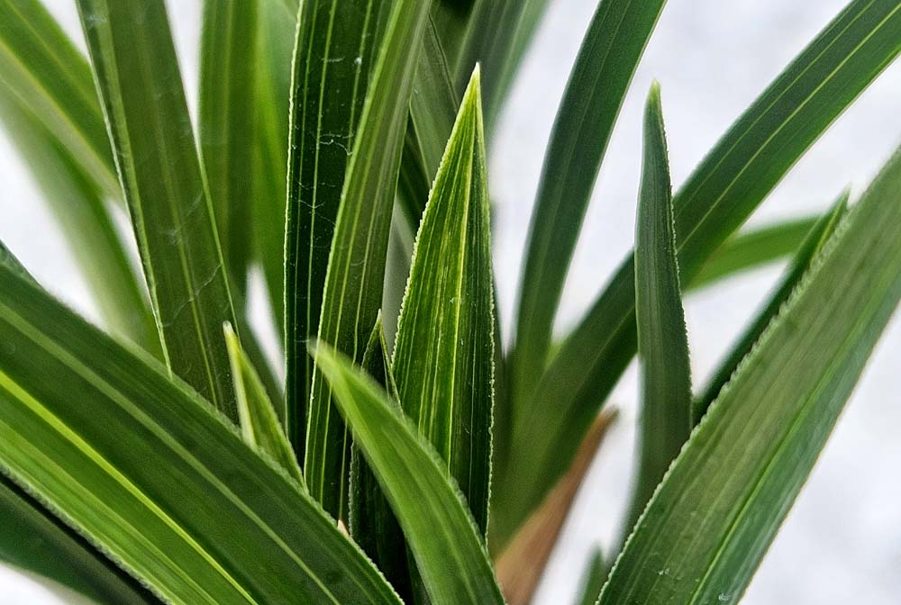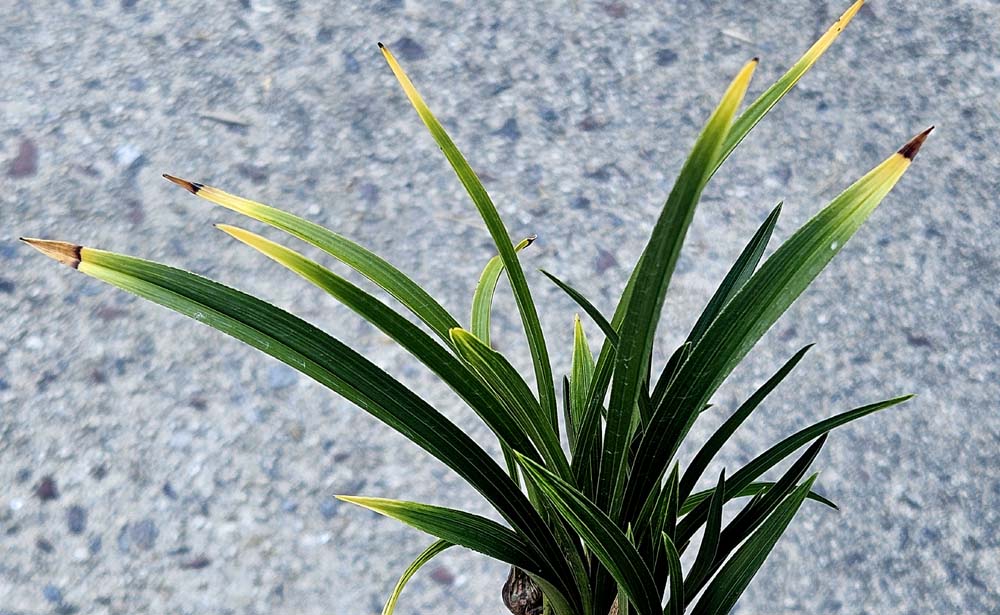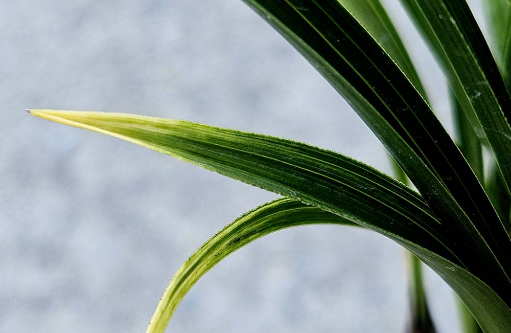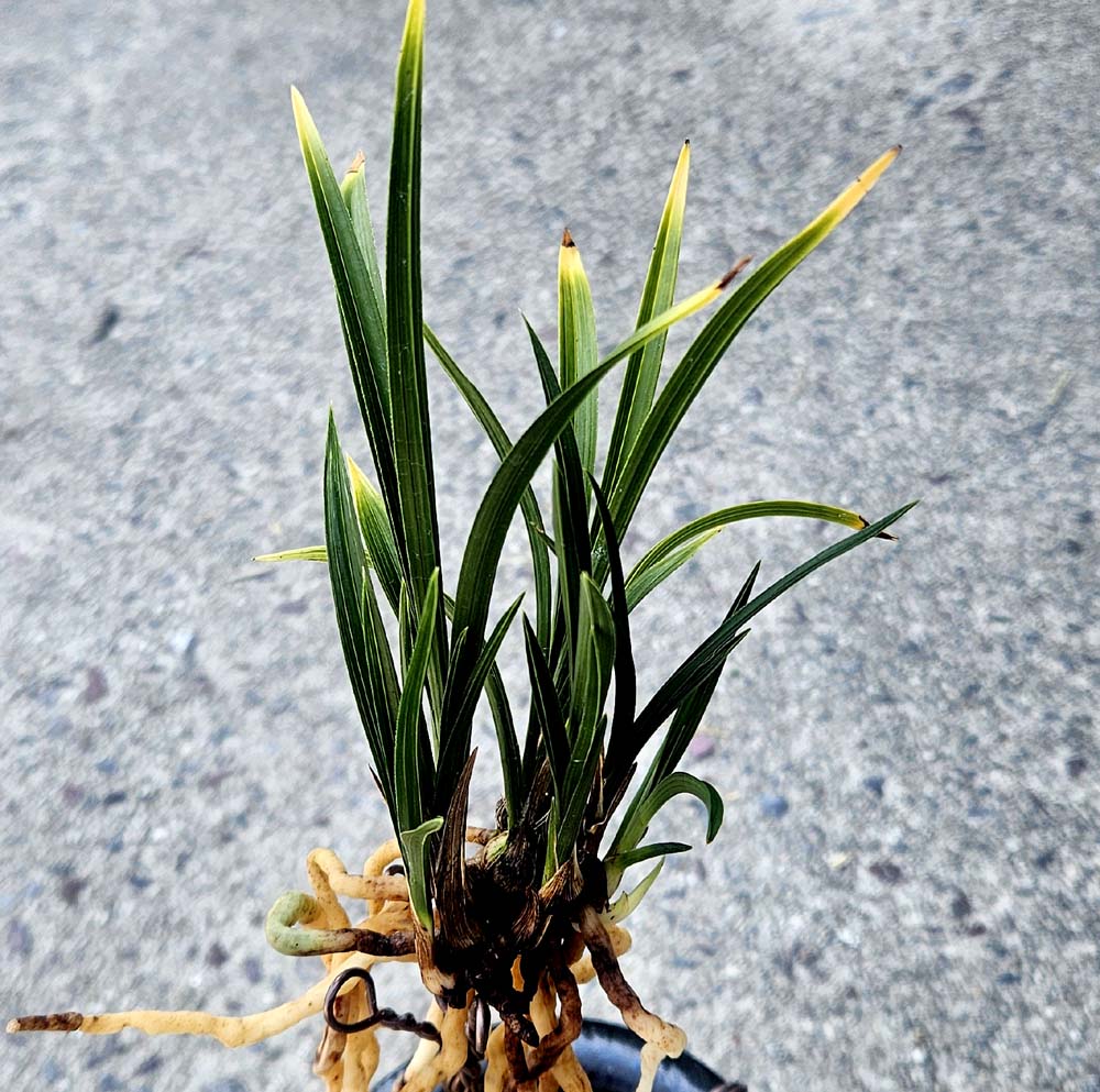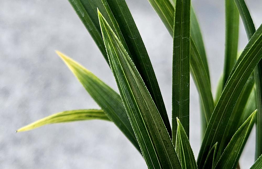 잎끝을 황색의 선반무늬에 반호 무늬를 함께 보이고있는