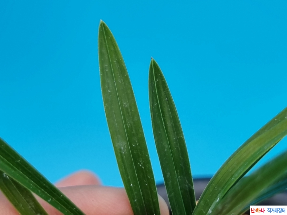 잎 마무리가 좋고 옥아있는 환엽입변에 서반성 무늬도 보이는 난입니다.