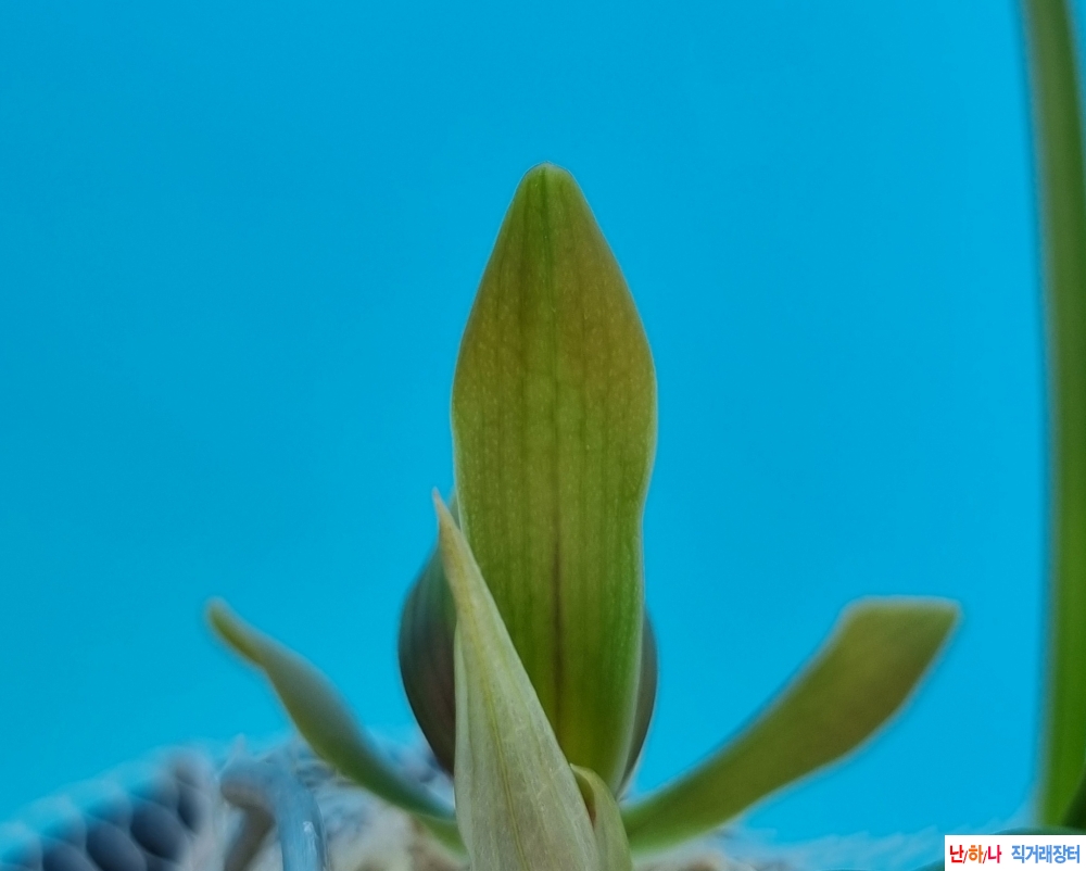 개화전까지 무수테 무화통에 자연 발색중인 난으로 주홍색이좋은