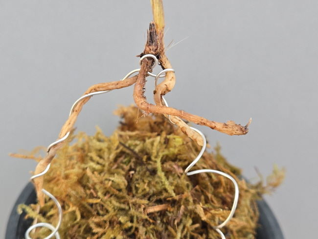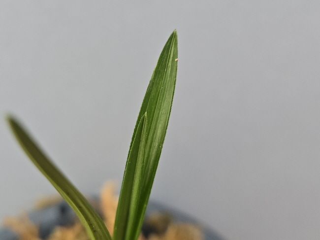 잎의 마무리가 좋으며 잎이 안으로 옥아 있는 산반무늬의 산채품입니다.