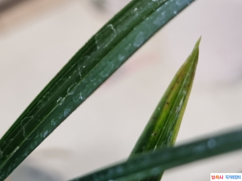 완전진청의 신아때화려한무늬 황산반으로 나오면서잎끝으로 산반무늬가남는 산반중에서도 종자성좋은입변황산반입니다.노수엽이아닌 입변종자목입니다.실물은 이쁜변인데사진상 영 안좋게나오네요.실물이좋습니다.산지:광주키:25cm폭:0.7cm 종류 : 황산반 가격 : 15만원 촉수 : 4촉 연락처 : 010 5633 6273 📞전화걸기 💬 문자보내기