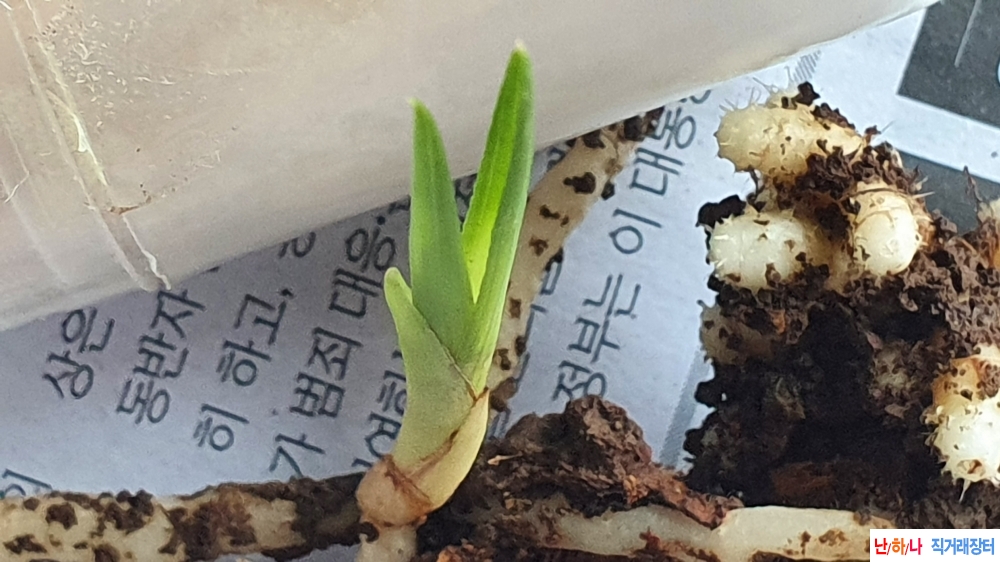단엽변 생강근 입니다. 뿌리 굵게 좌우로 잘 내렸네요.
