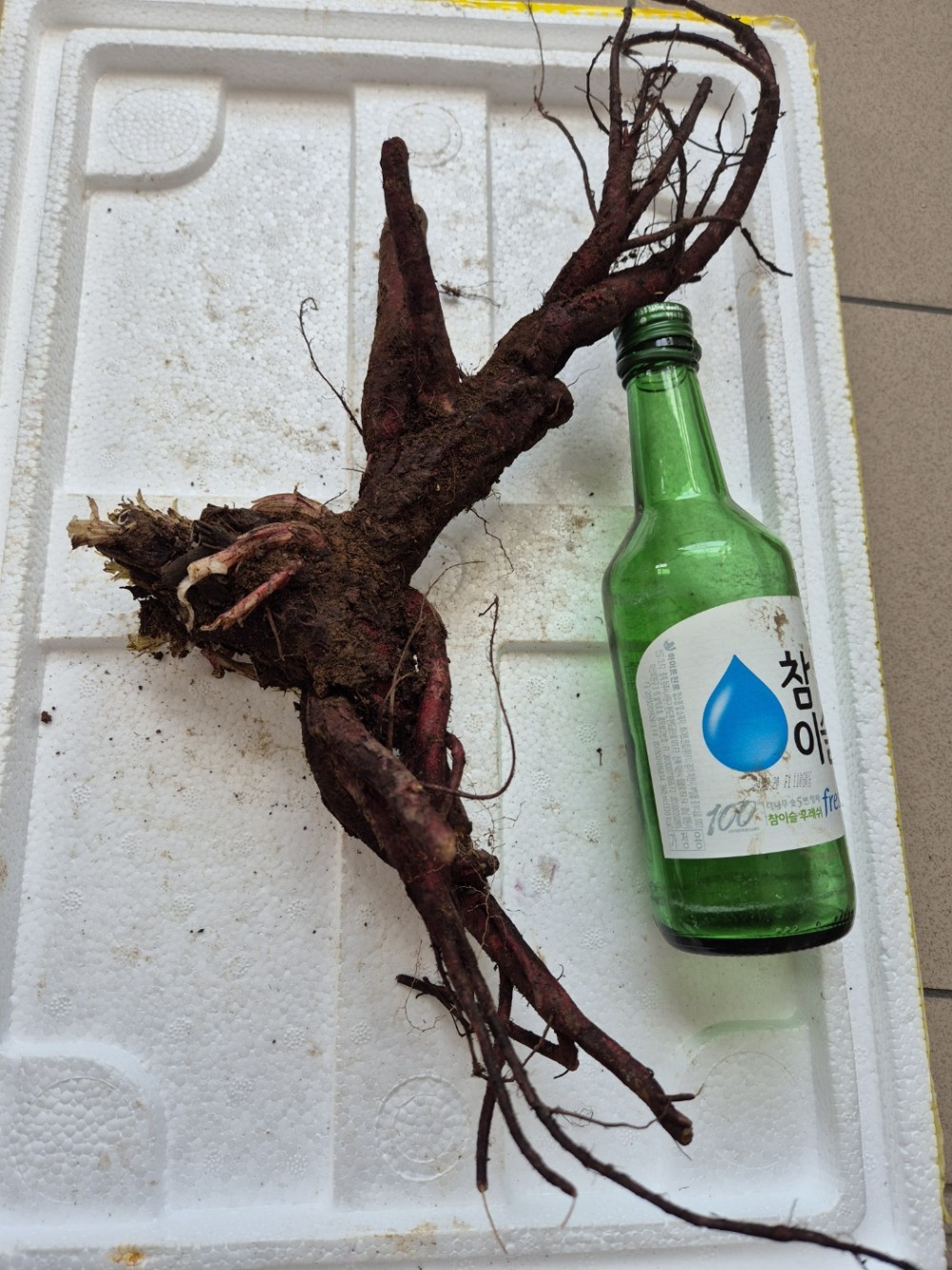 업청 오래된 지치 입니다(굵기는 소주병 비교사진 참조)