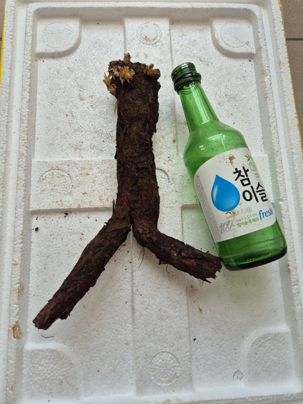 업청 오래된 지치 입니다(굵기는 소주병 비교사진 참조)