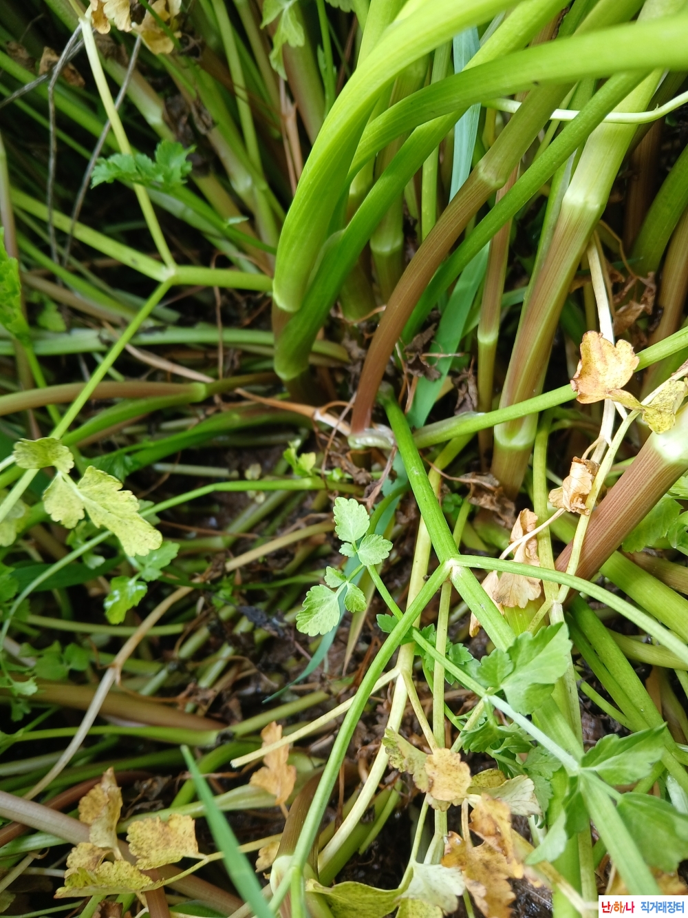 청정 산기슭 계곡 자연산 붉 돌미나리
