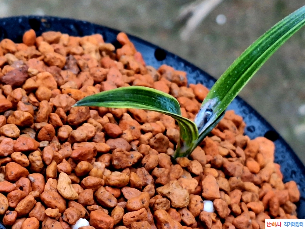 까닥지 단엽변 금계녹호산반으로 고가품 종자이며 분갈이중 분축된 우수한 종자입니다 6/0.75
