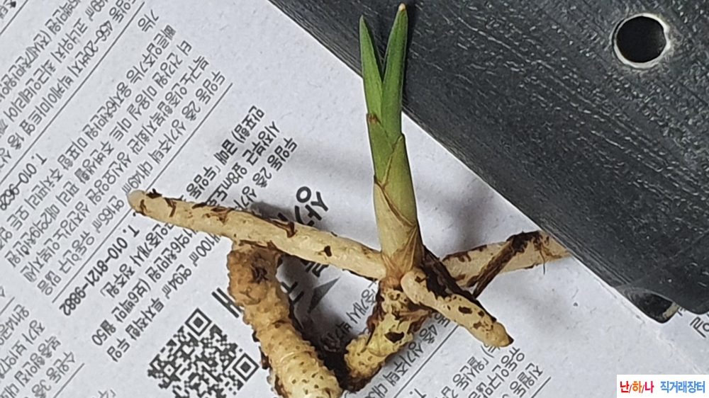단엽변 생강근 입니다. 뿌리 굵게 잘 내렸네요 ~