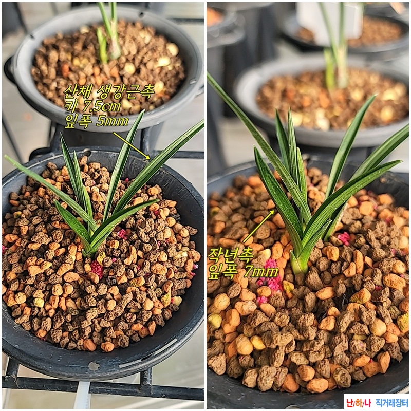 산채촉에 비해 작년 신아는 배골이 깊고 잎폭이 7mm까지 나옵니다.