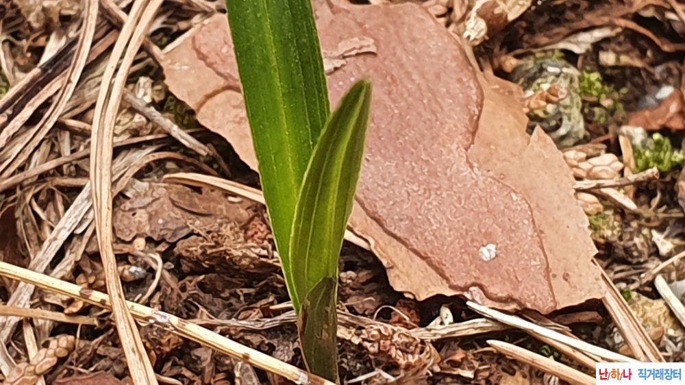 밭자리 산채한 단엽성 반성입변 생강근 입니다.