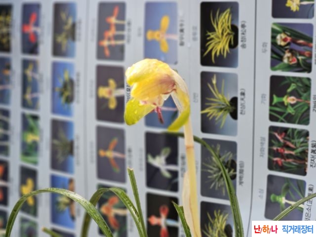 무명특종자 소개합니다. 함평산지의 황화로 원판형의 특화형입니다.금년도 전시 출품계획이 없어서아무런 꽃대관리 없이 피운 꽃입니다. 조기차광이나 화통작업등 약간의 꽃관리시 개나리색의 화려한 원판황화로 비어주는 꽃입니다. 종자하세요.25/0.8 종류 : 황화 가격 : 24만원 촉수 : 6촉 연락처 : 010-3606-3830 📞전화걸기 💬 문자보내기