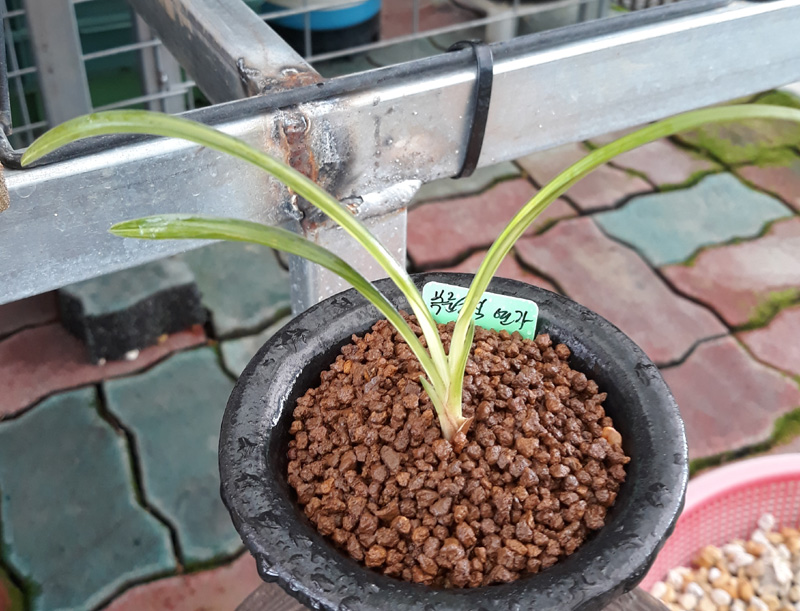 명품 복륜소심 연가 입니다. 복륜소심이란 품종이 흔치 않은 품종이면서 기존의 명명품 복륜소심보다 훨씬 더 촉수가 적고 희소가치가 있어서 종자목으로 좋습니다. 진녹의 바탕에 무늬가 깊게 들어가는 명품 종자목으로 강추 합니다. 뿌리상태 최상이고 잎도 너무 깨끗하며 전진촉에서 신아 커다랗게 달려서 올해 무난히 증식이 되리라 봅니다.