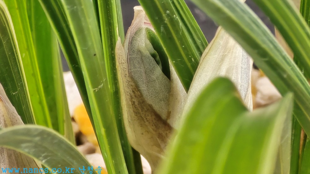*백복륜화 명명품 초가입니다. (큼직막한 꽃에 통통한 꽃망울 5대가 녹대비가 좋으며 무늬화가 잘 들어서 개화를 준비하고 있습니다.)