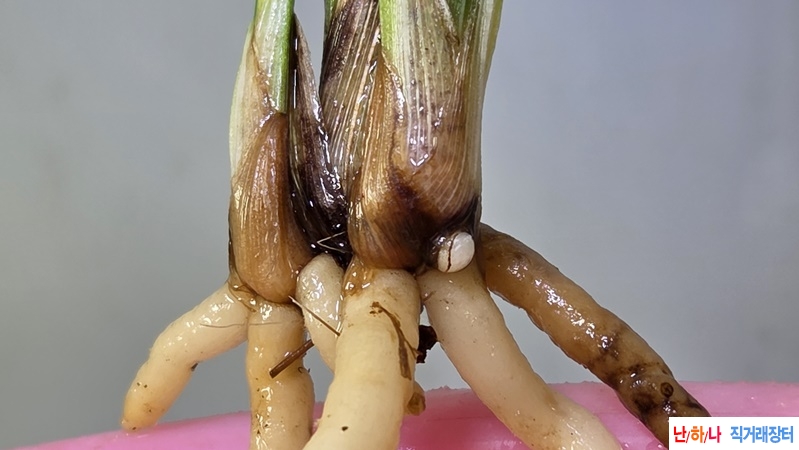 모촉에서 2촉을 받었는데 한촉은 성장을 멈추고 뿌리3가닥을 잘 내렸고 / 한촉은 쭉커서 잠아를 정포인트에 잘 달았습니다.