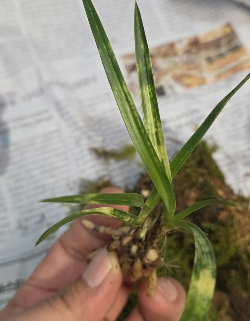 산채 출발 그대로 입변 서반 종자 2촉입니다. 입엽성으로 서있는 엽성에 화려한 서반 무늬가 잘 들어있습니다. 올해 잠아 양쪽으로 2개 달려있습니다. 촉수 : 2촉 , 길이/넓이 : 13/0.5 , 분주/개화 : 미/미 , 산지 : 경남 입금계좌 : 하나은행 3399-1050-991107 예금주 김훈 문의전화 : 010-6274-1154 종류 : 입변 서반 가격 : 12만 촉수 : 2촉 연락처 : 010-6274-1154 📞전화걸기 💬 문자보내기