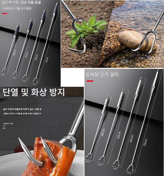 스테인레스/나무 손잡이 후크 갈퀴입니다.